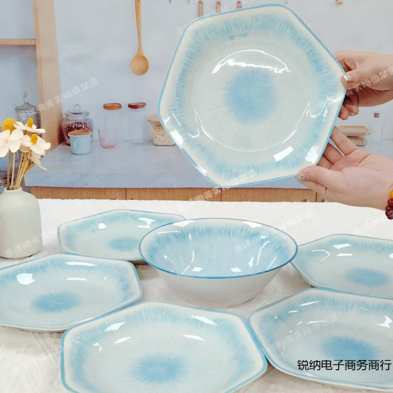 新しくアップグレードされたオーシャンラブ六角セットプレート7点カトラリー7点セット家庭用陶器シンプルで見栄えの良い食事
