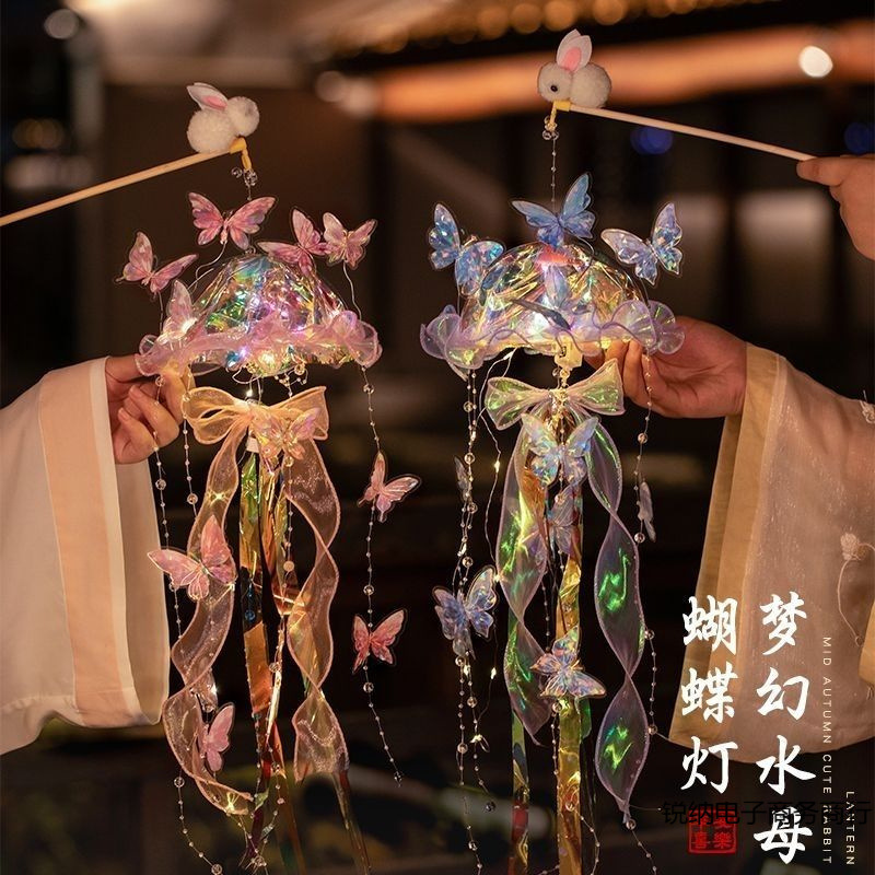 2025 新クラゲランプ手作り diy 材料パッケージナイトマーケットの屋台子供ポータブルホリデー発光ランタン卸売