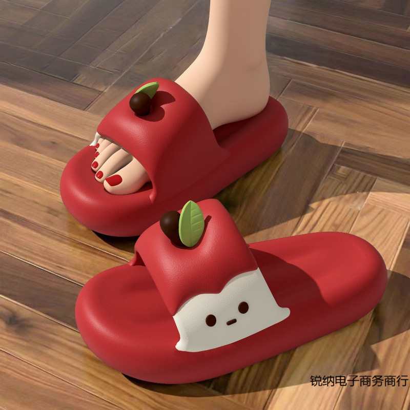 新しいアップグレードされたスリッパ女性の夏のアウトドアウェア屋内ホーム厚底滑り止めかわいい楽しいアップルカップルサンダル