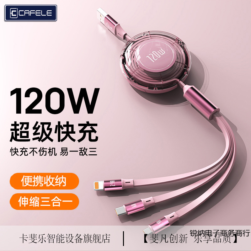 Kafeila 120W 格納式高速充電データケーブル 1 対 3 Apple 車 Huawei Android スリーインワン充電に適しています