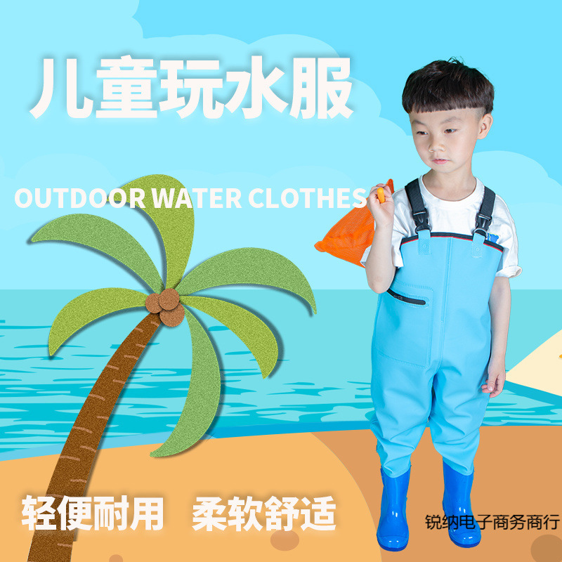 子供用ワンピースウェーダー、幼稚園遊び用砂遊び服、魚捕り、子供用防水レインパンツ、男の子と女の子用レインブーツ
