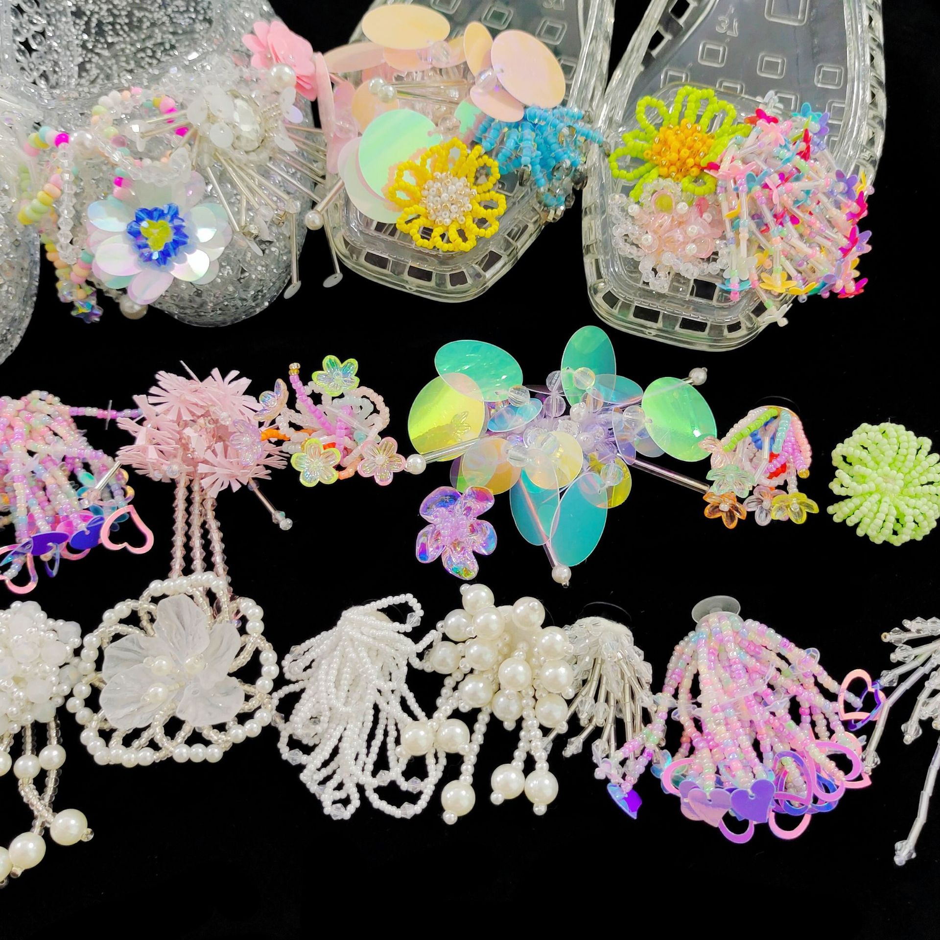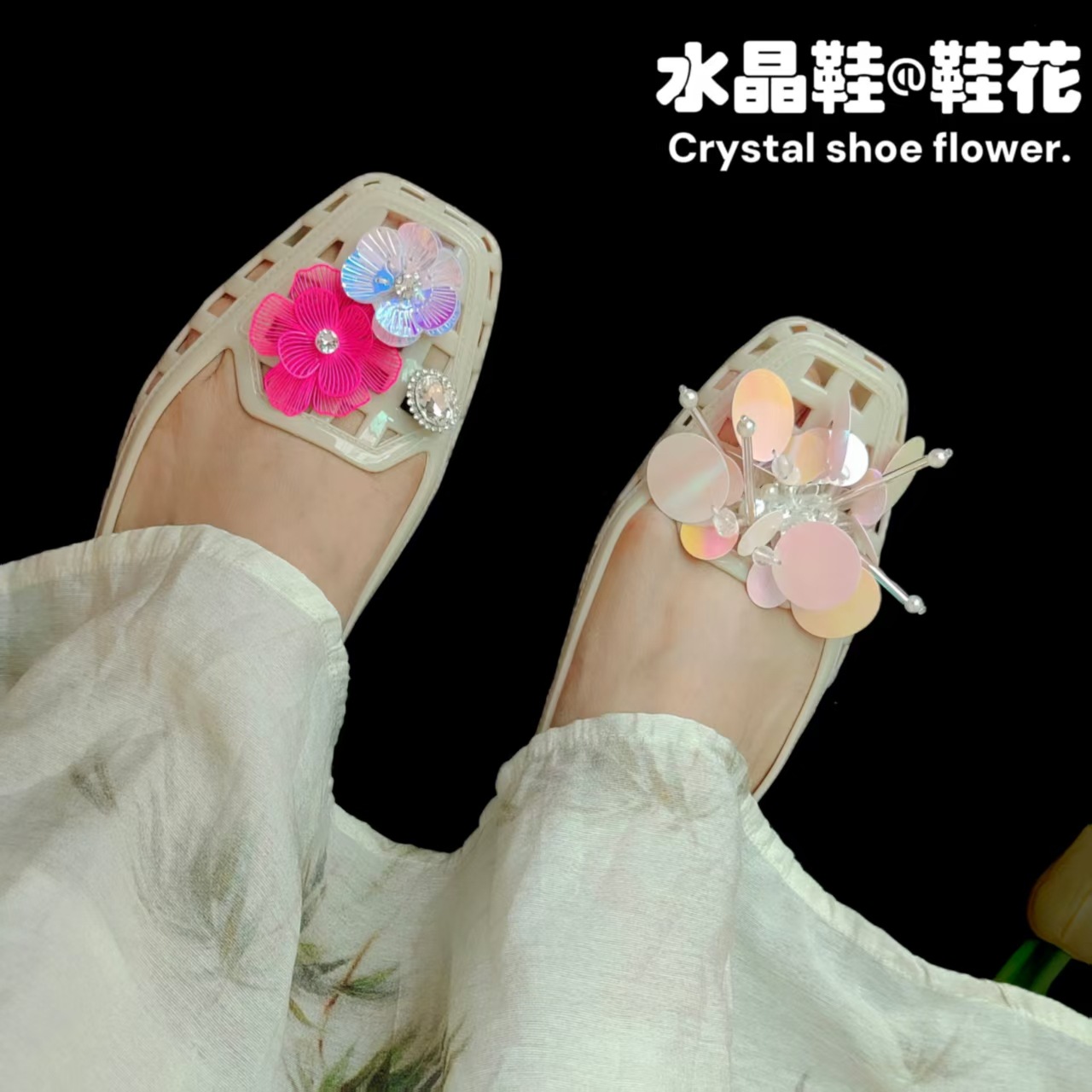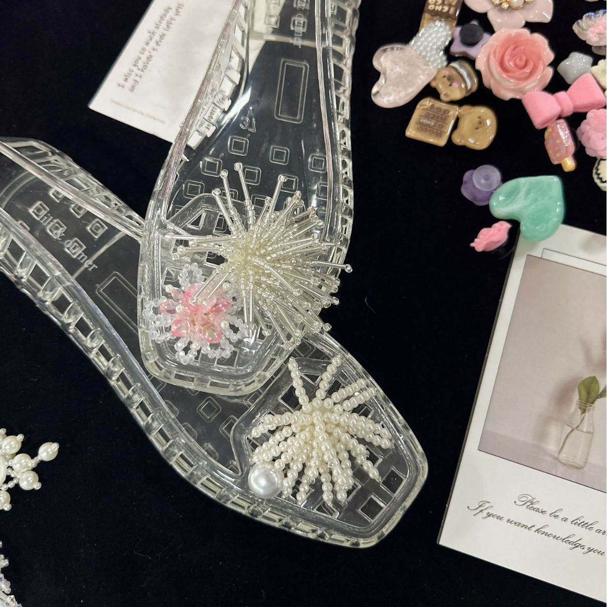 2025 韓国ゼリーシューズクリスタルシューズフラワーレディースアクセサリー透明下駄バックルパール花火 DIY スパンコールフラワー