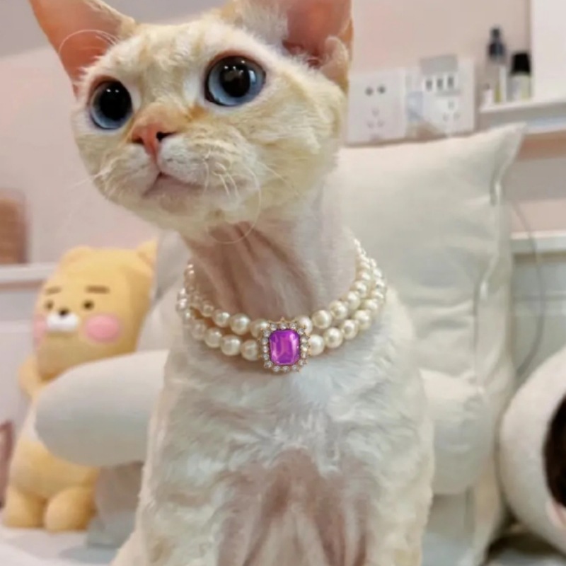 アマゾンペット二列縦型真珠ドリル首輪猫犬のネックレスはかわいいアクセサリーを調節できる