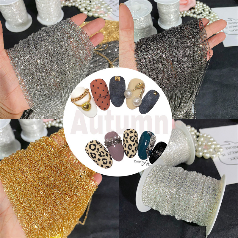 超細い0.6mm日系ネイル金属チェーン平鎖極細包辺爪細いチェーン金色銅色銀色