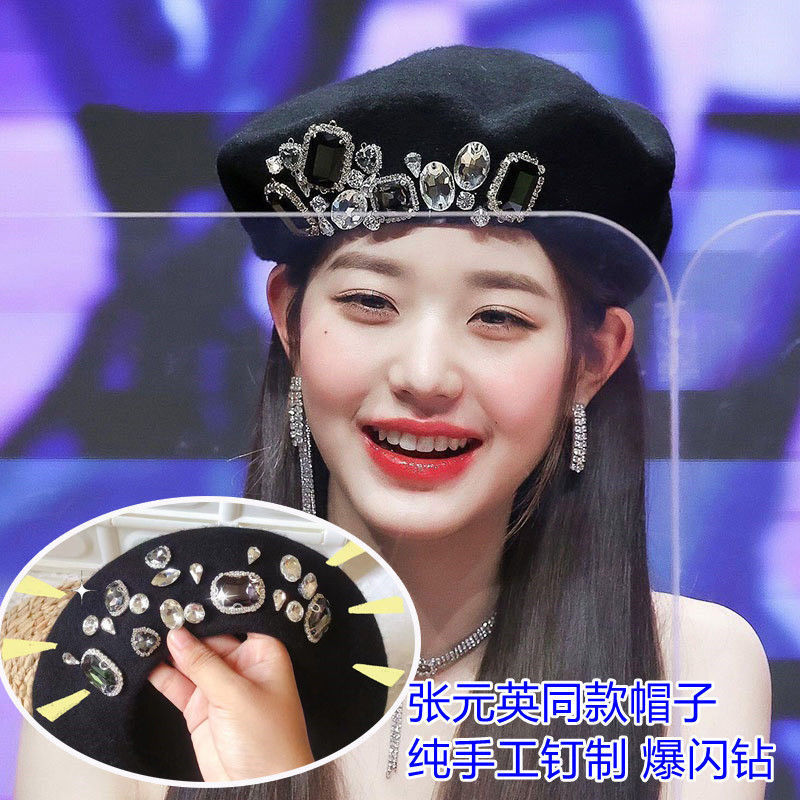張元英の同モデルのベレー帽の女性秋冬ウールは黒い画家の帽子の大きい頭の周りのファッションのドリルの八角の帽子です。