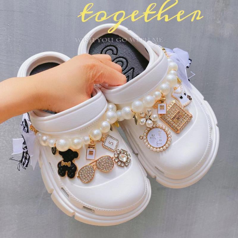 赤い本の穴の靴は香水の瓶のチェーンの女性のdiyの靴のボタンを飾って靴の花の部品を飾ってメガネを飾ります。
