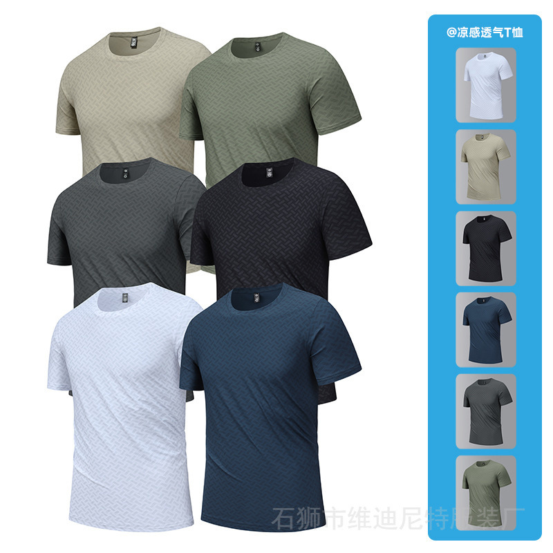 クロスボーダーメンズラウンドネック大きいサイズ速乾性Tシャツ軽量で通気性のあるアウトドアフィットネスランニングスポーツレジャーアイスシルクトップ