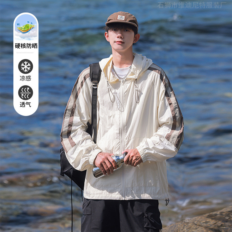 Upf50 + 日焼け止めコート男性夏の新型アウトドア紫外線防止氷糸薄手フード付き日焼け止めジャケット