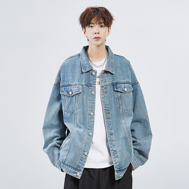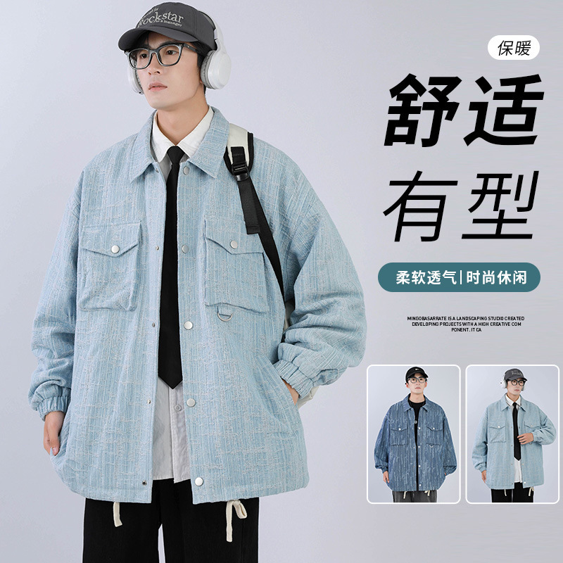 2024春の新しい爆発的なデザイン感がゆるいカジュアルな襟付きジャケット韓国版百合トレンドカウボーイコート男性