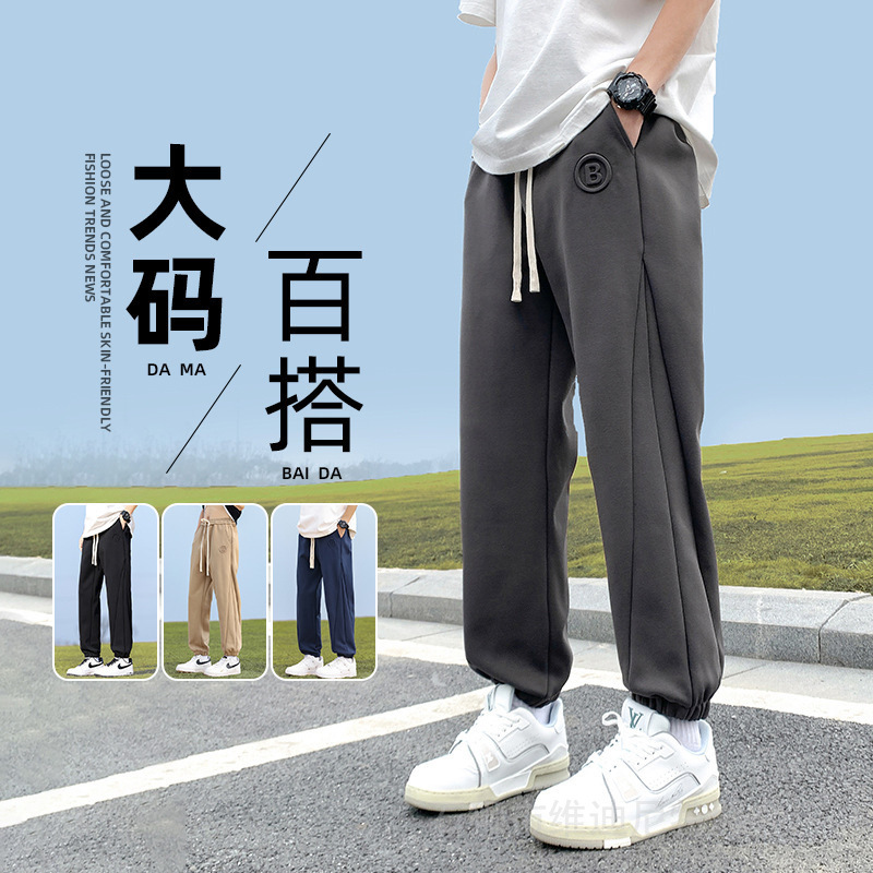 2024春と秋の大きいサイズの男性はズボンを合わせてゆったりしています。