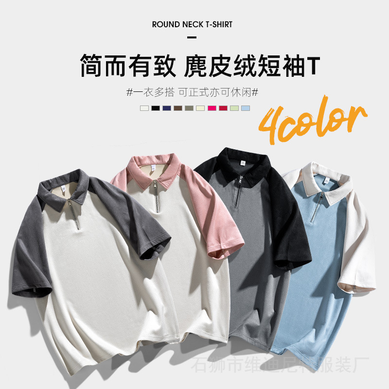 2024夏の潮は色の香港風の半袖の男性のカップルを挿し込みます。