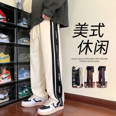 2023新型のファッションブランドの男性のズボンのアメリカのストレートのカジュアルなズボンは色のサイドのファッションの潮流をつづり合わせてゆったりしています。