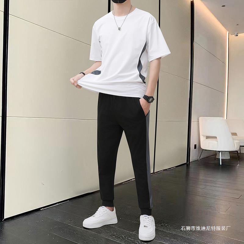 高品質スポーツスーツ男夏士季氷糸速乾カジュアル服ゆるいプラスサイズ半袖ズボン2点セット