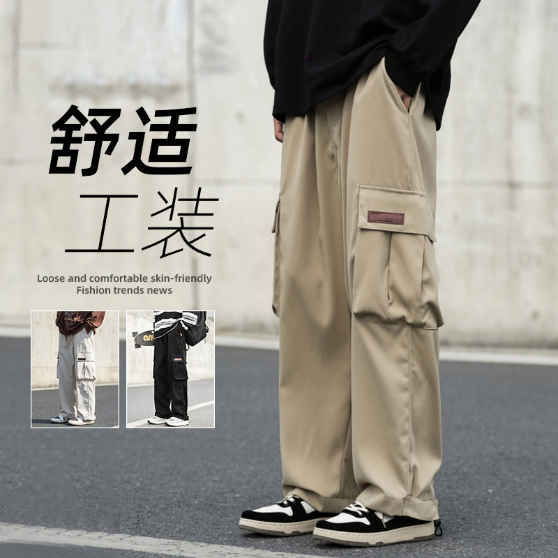 2023新型工装ズボン男性タイプ春秋アメリカファッションブランドゆるいストレートパンツ男性日系カジュアルパンツ