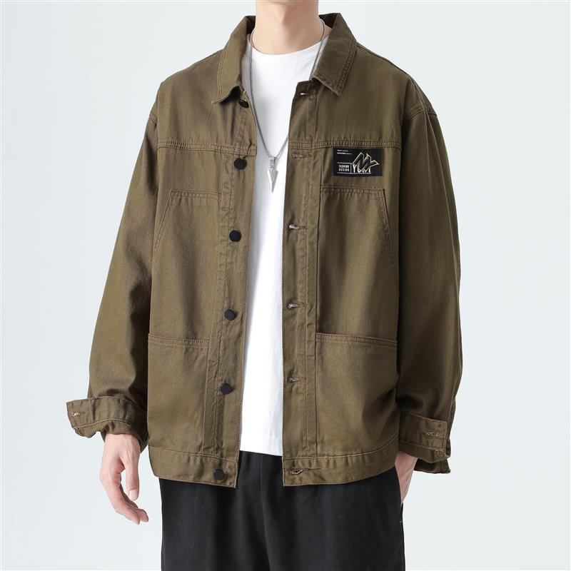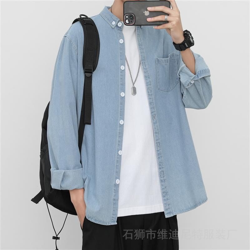 春と秋の薄いコートは日本のレトロな水洗いデニムシャツです。