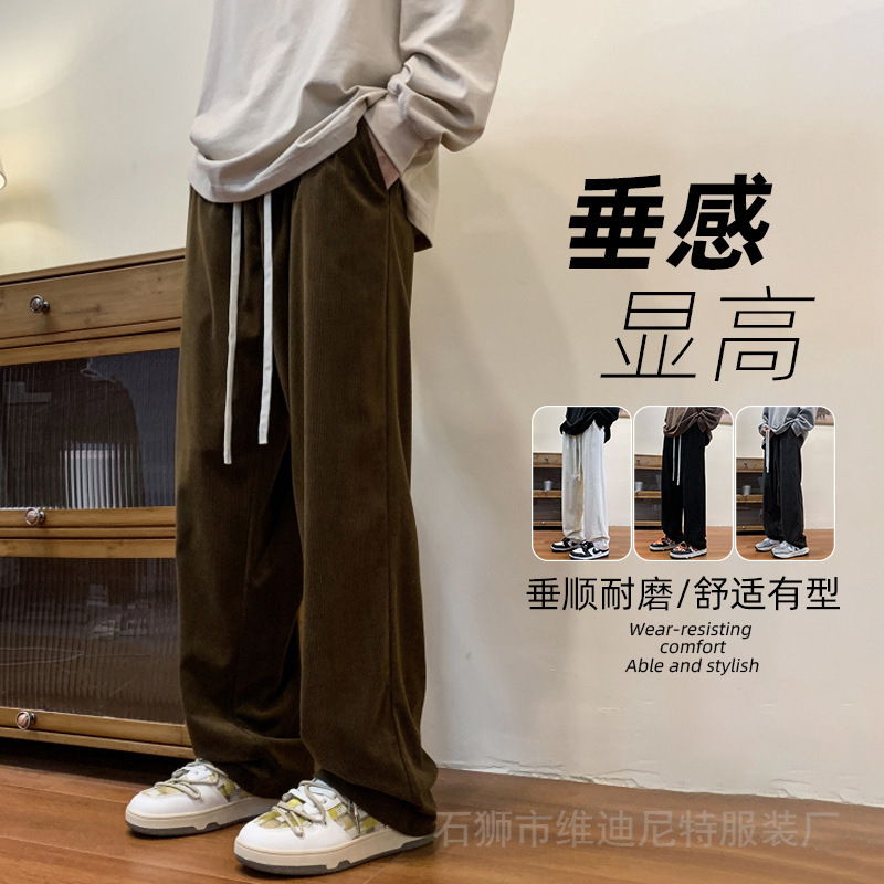 秋冬のアメリカのレトロなベルベットのカジュアルなズボンの男性の超大きいサイズのファッションブランドのストレートのゆるい垂直感のコーデュロイのズボンの男性