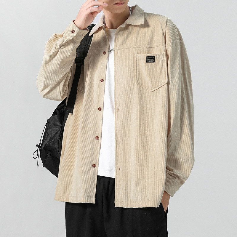 コーデュロイ長袖シャツ男春秋新作コート日系ビッグサイズレトロ高級感ゆるいカジュアルシャツ男