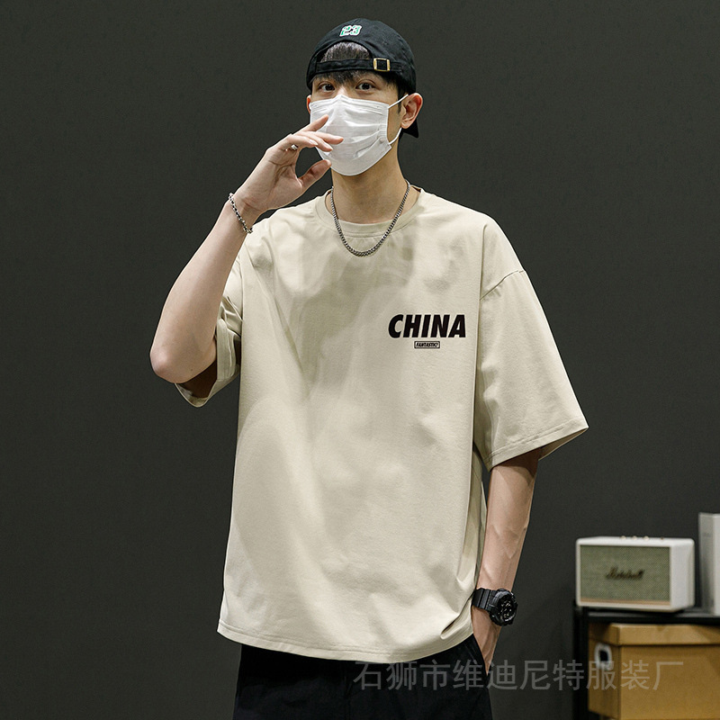 ファッションブランドのカジュアルスポーツtシャツ女性の夏の爆発的な国の潮のアルファベットのプリントの丸首は肩に落ちてゆったりしている男性のカップルの金です。