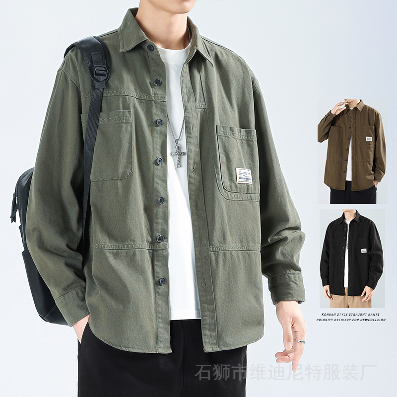 斜纹高品潮牌シャツ日系春秋男痞帅襟insカジュアルコートメンズ長袖カーディガン