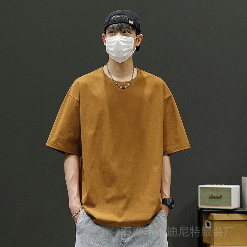 2024夏の新型純色空板落肩ゆるい運動レジャー氷糸半袖tシャツ男女同型カップル