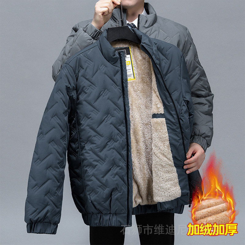 2023新型男性ダウン綿服コート保温防風ファッションベルベット父装祖父装立襟中高年