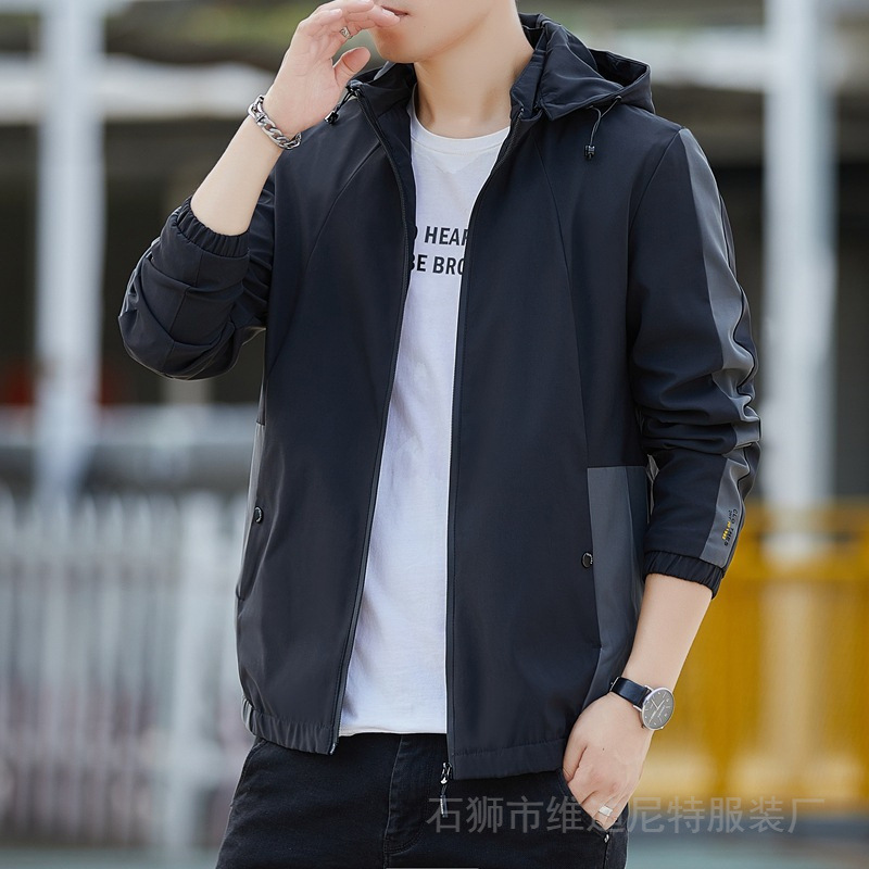 帽子付きジャケット男2022春秋新型カジュアル防風突撃服中青年男性秋装薄手コートブーム