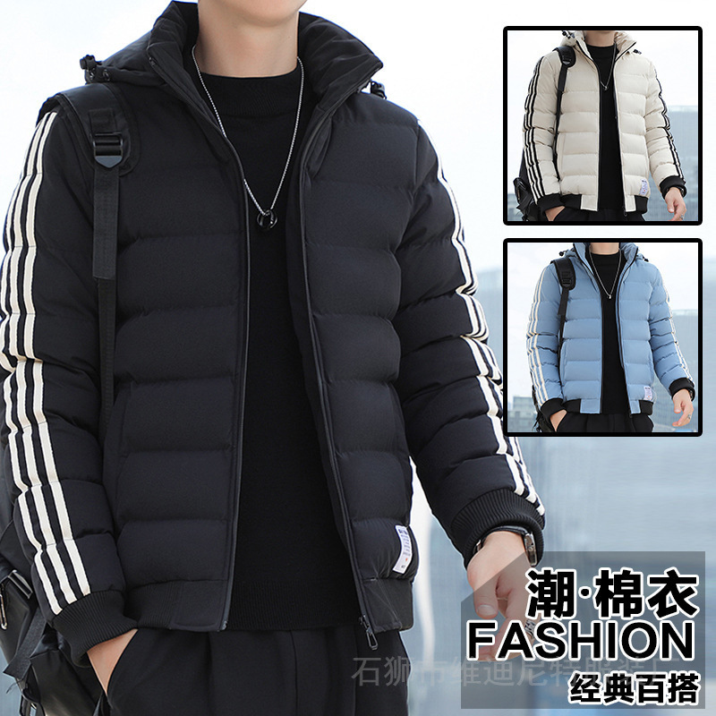 2023冬の新しいサイズの2、3本のバーに綿の服の男性の帽子のコートのダウン綿の服の男性の綿入れの上着を合わせます。
