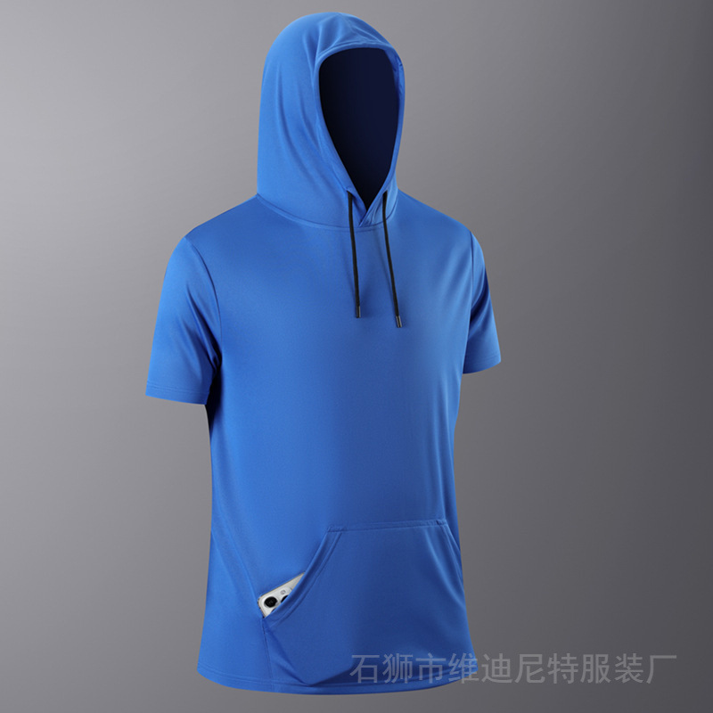 クロスボーダーヨーロッパサイズ人気の速乾性半袖フード付きスウェットシャツスポーツフィットネスバスケットボールトレーニングTシャツメンズ通気性ランニング夏