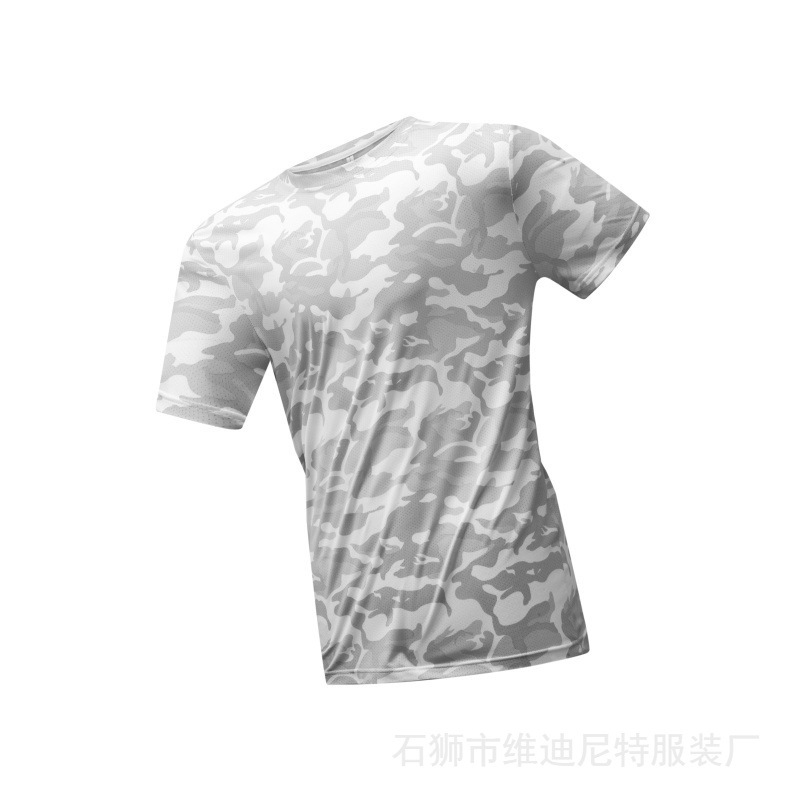 クロスボーダー人気のグラデーション迷彩プリントアイスシルクTシャツメンズ夏薄手スポーツルーズ大きいサイズアウター半袖