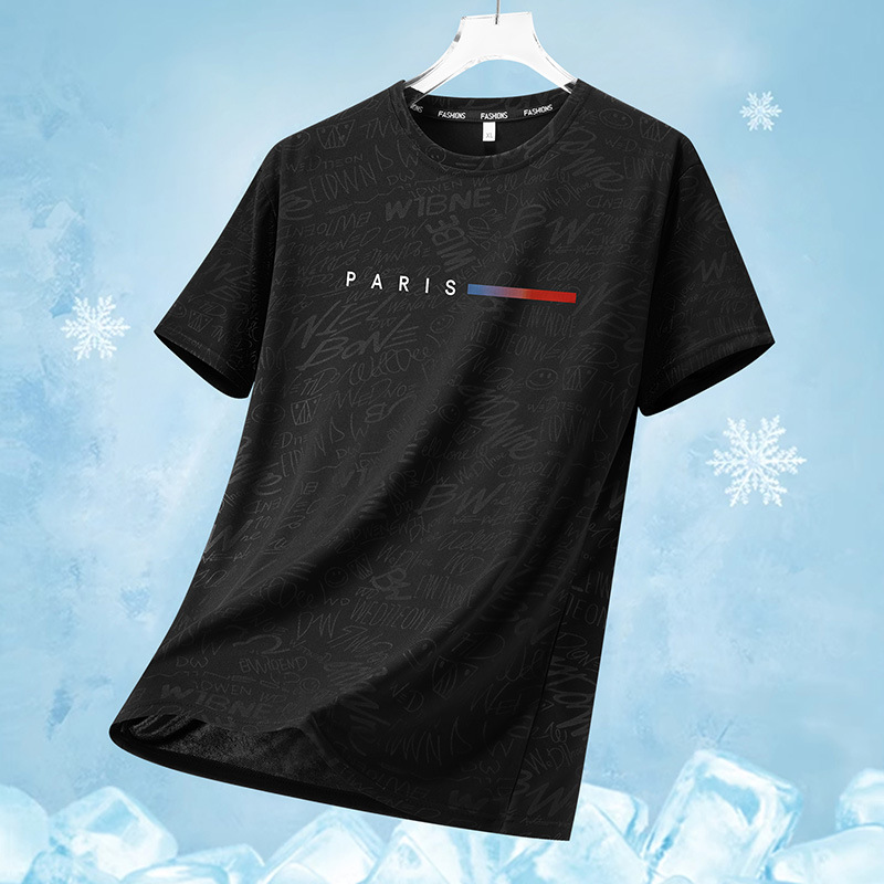 クロスボーダーヨーロッパサイズは、アイスシルク速乾性Tシャツ、メンズスポーツアウトドア半袖トップス、カジュアル、通気性、吸汗性を2回開くことができます。