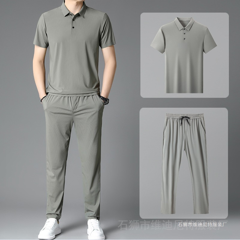 アイスシルクポロシャツメンズ半袖高弾性ノンアイロン高品質Tシャツメンズラペルトップス仕事用高級紳士服