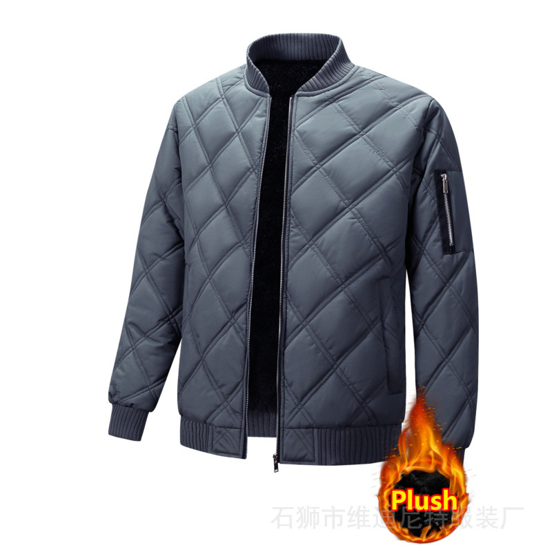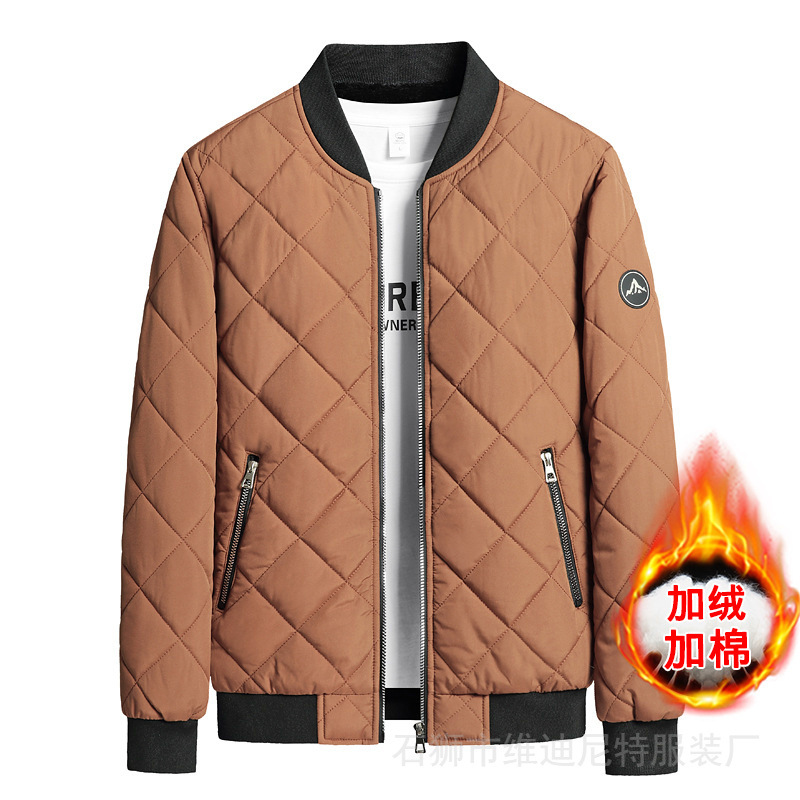 男性綿服2024年新冬立襟ベルベット保温綿服の菱格子コート男が国境を越えた