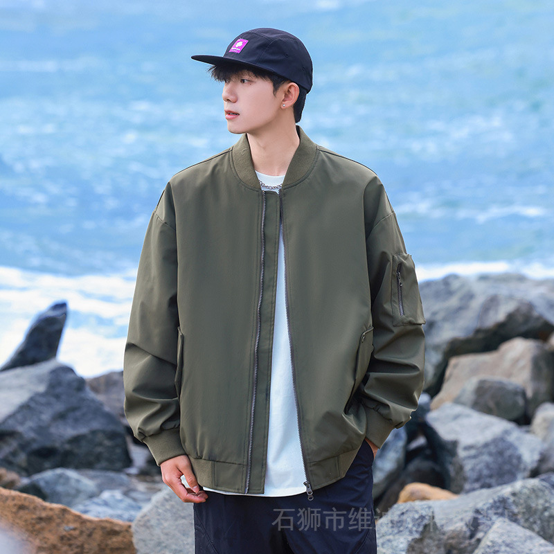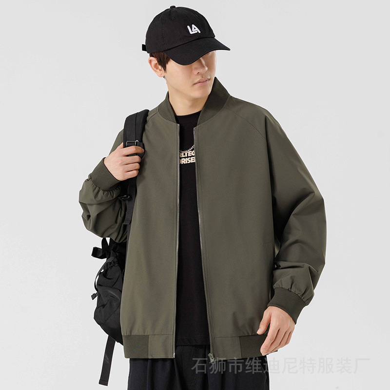 春と秋の新型メンズカジュアルジャケット男性野球襟純色ジャケット男性は二次開発に適しています。