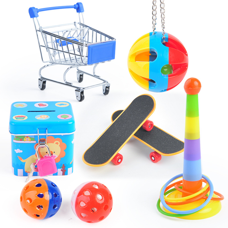 オウムの鳥のおもちゃセットの益智トレーニングの輪のスケートボードの車のインタラクティブなオウムの用品のアマゾンは卸売りします。
