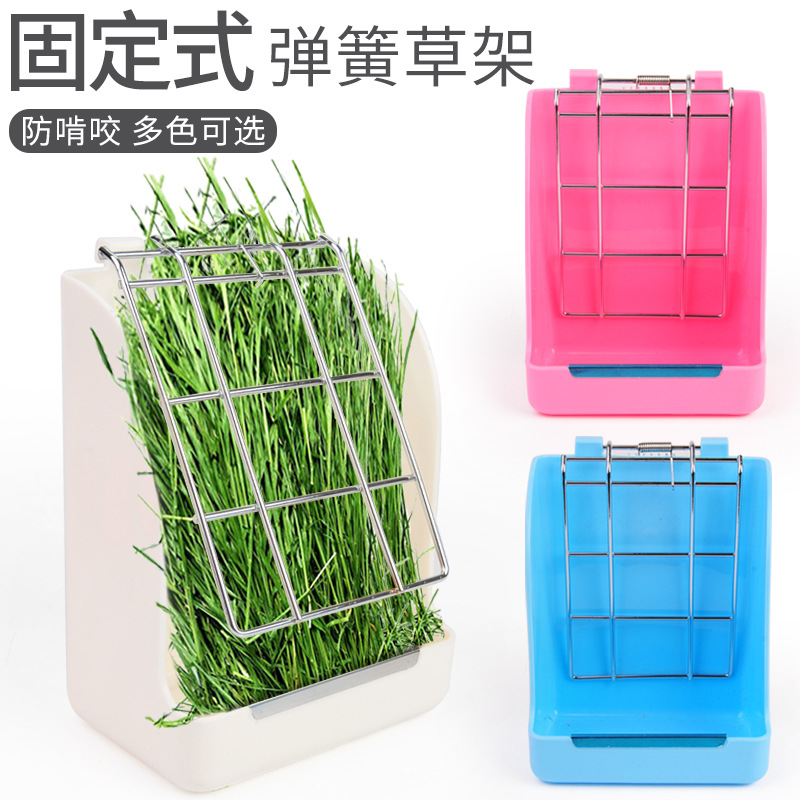 メーカーのウサギのスプリングの草の棚はケージの固定式の竜猫の食事のたらいの上でハッチ式のモルモットの草のかごを掛けます。