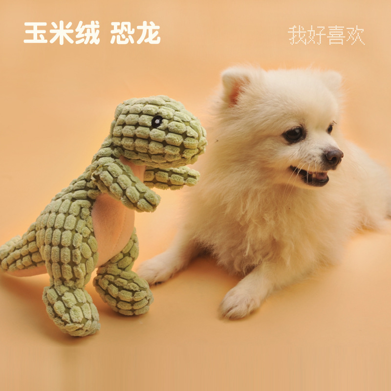 ペットのぬいぐるみのトウモロコシの毛の音の恐竜の犬は歯ぎしりに耐えます。