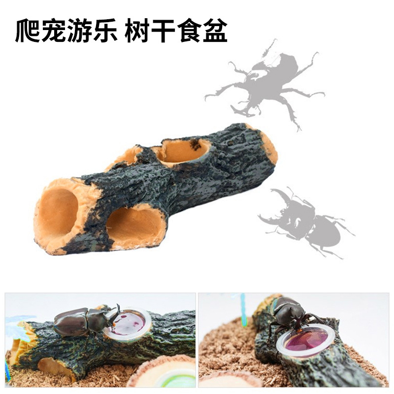 模擬木の幹餌皿、爬虫類ペットフィーダー、カブトムシゲーム、木の昆虫餌皿、造園用品