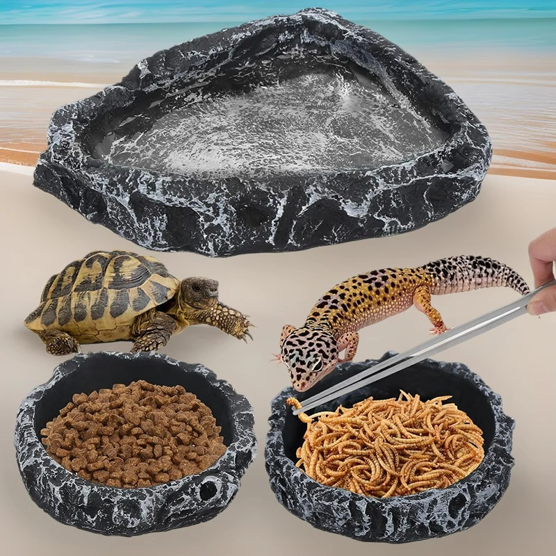 爬虫類の水入れ、餌入れ、トカゲ、ヒゲ、レオパード柄、ヤモリ、ヤドカリ、カメ、ヘビ、模造岩の餌やり器、水飲み皿
