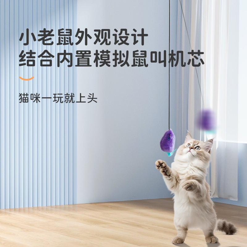 音を立てるネズミを吊るして、ネズミと呼んで、猫の棒を笑わせます。