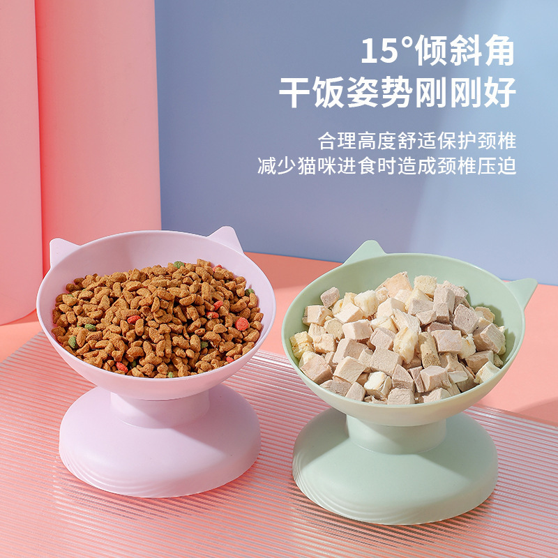 高足碗保護頚椎ペット食盆高足杯斜口猫給餌碗かわいいプラスチック猫耳ペット碗