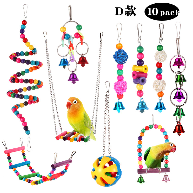 オウムのおもちゃ10点セットクロスボーダー卸売オウムかじり玩具ケージセット鳥かご部品用品