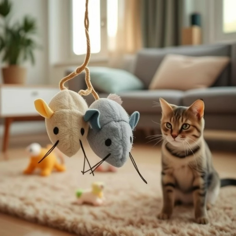 ぬいぐるみのネズミの猫のおもちゃのインタラクティブをシミュレートします。