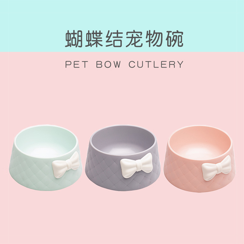 キャンディー色の蝶結びのペットの碗の丸い猫の碗の犬のたらいは水の単碗のメーカーの現物の卸売りを与えます。