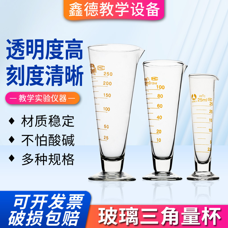 ガラス三角計量カップ25ml/100ml/250mlスケール付き計量カップ化学実験器材メーカー卸売り