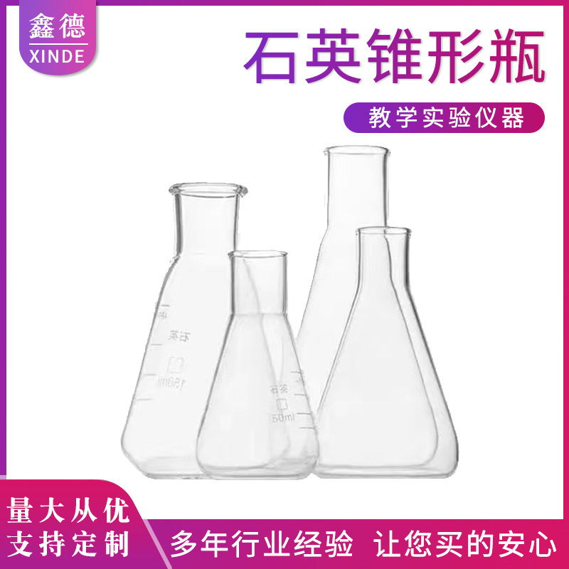 メーカーは石英ガラスのテーパーボトルを供給しています。目盛り付きの三角フラスコはホウ素のテーパーボトルがありません。50-1000mlです。