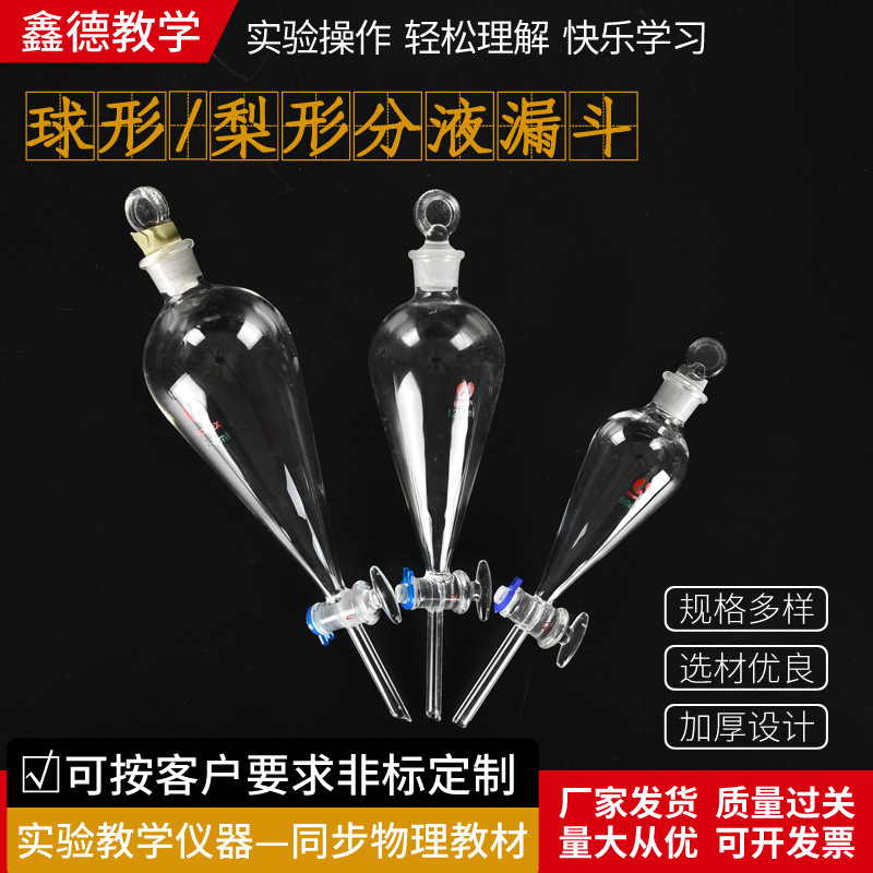 球形梨形分液漏斗実験室ガラステフロンピストン30/60/125/250/500/1000ml