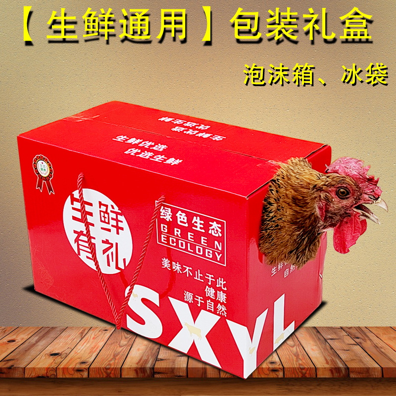 生鮮ギフト紙箱保温新鮮冷蔵発泡箱氷袋活鶏生肉手提げカラークリエイティブ包装