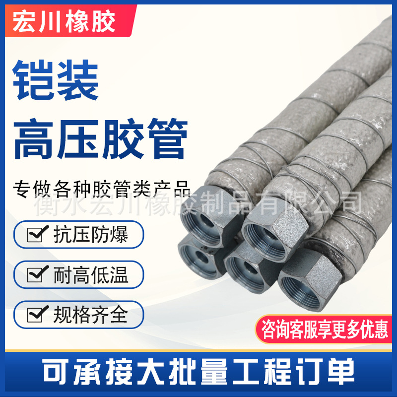 メーカーは装甲高圧ホース、装甲耐火高圧ホース、外側にアスベスト編組を備えた難燃性高圧ホースを供給しています。
