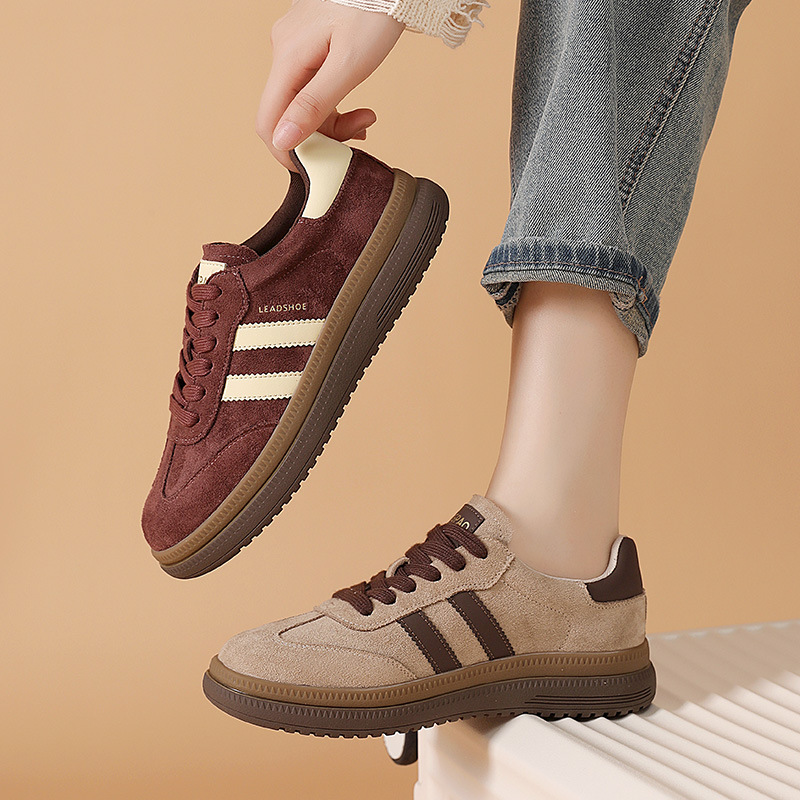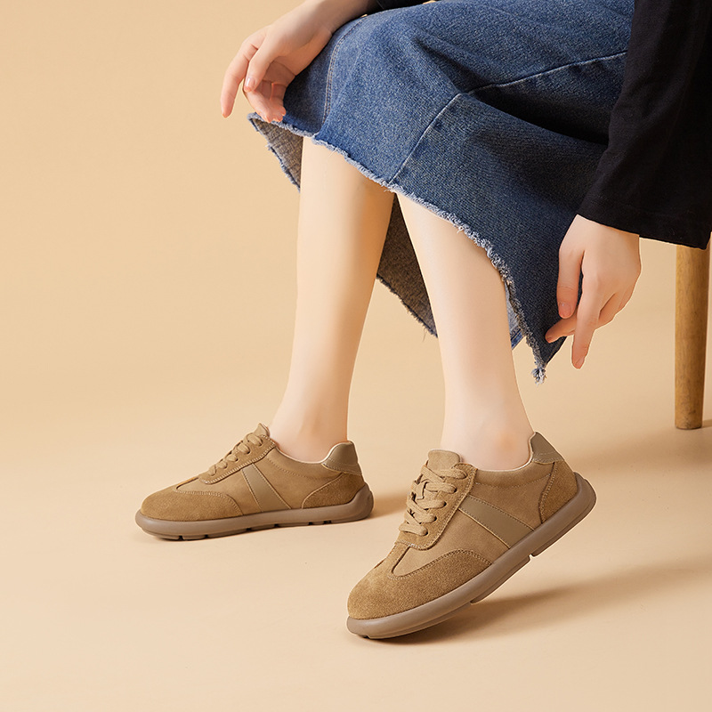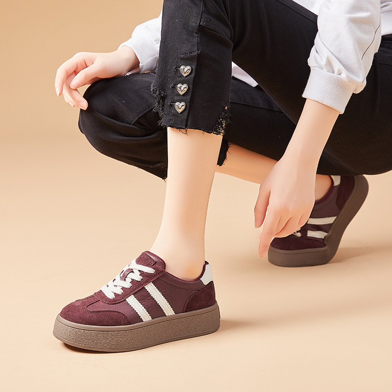 徳訓靴女2024冬の新型レトロ百合色ベーケン靴ファッションカジュアルソフト底快適板靴