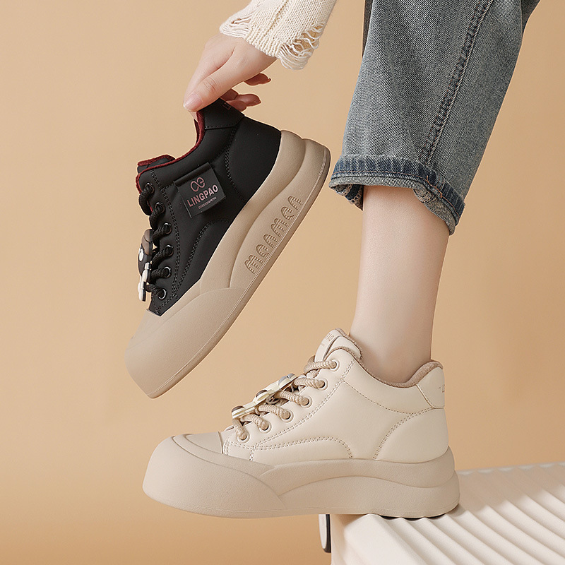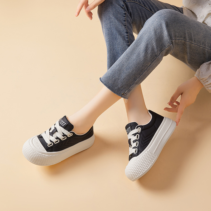 厚い底の快適なカジュアルシューズの女性2024秋冬の新型の滑り止めパン靴のキャンパスの爆発的な靴